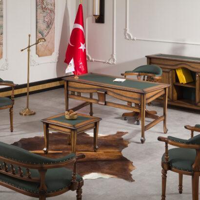 Her ayrıntısı titizlikle işlenmiş olan Beyrut Makam Takımı, yalnızca bir masa takımı değil; aynı zamanda kurumsal gücün ve prestijin sembolüdür. Lüks ofis mobilyası kategorisinde yer alan bu özel tasarım, ofis dekorasyonuna sofistike bir atmosfer kazandırır.