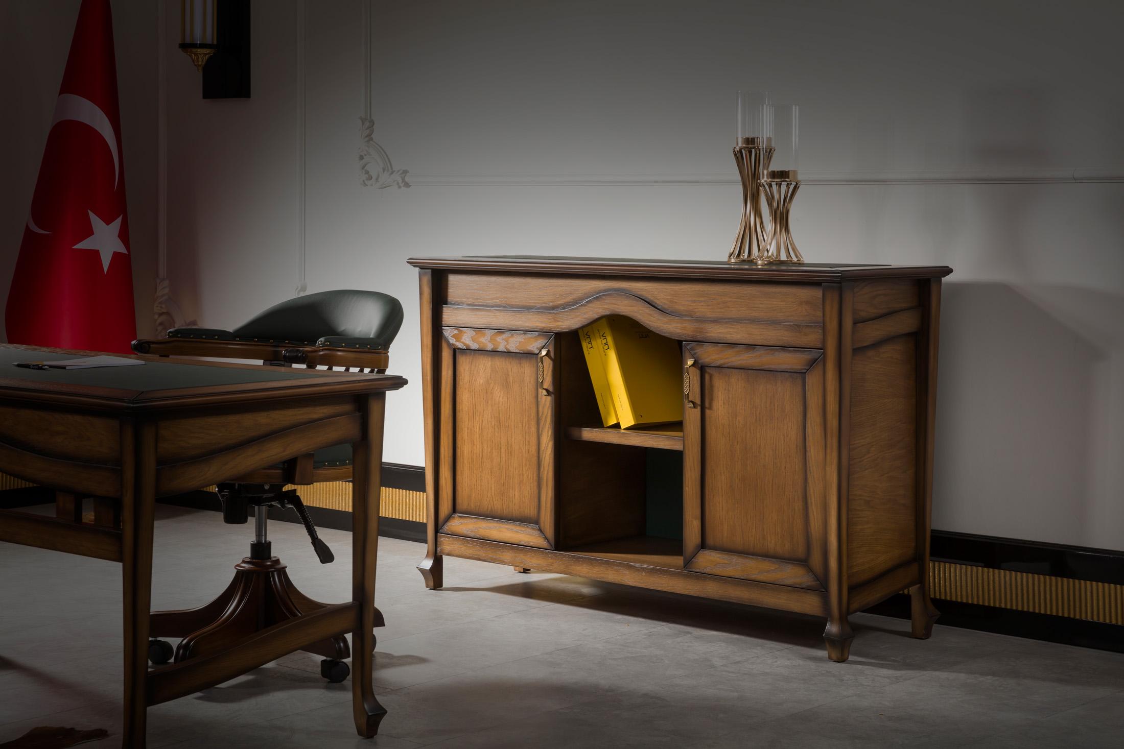 Kaliteli ahşap ve yüksek kaplama malzemeleriyle üretilen Beyrut Makam Takımı, yıllar boyunca ilk günkü şıklığını korur. Klasik ofis mobilyaları arasında öne çıkan bu takım, dayanıklılığıyla uzun ömürlü kullanım sağlar.